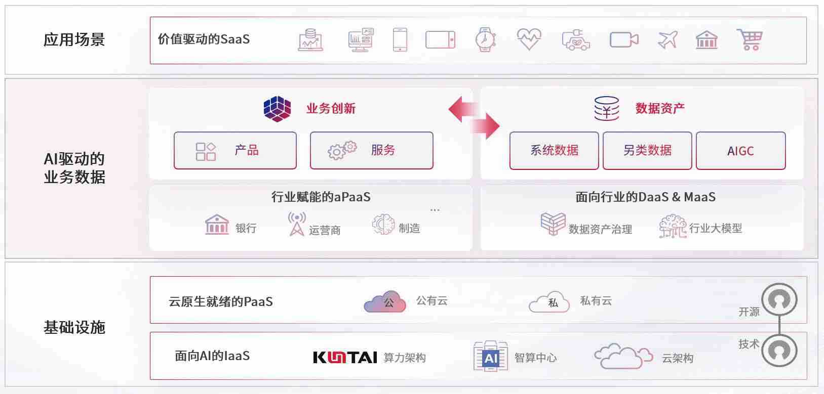 数字时代,,围绕企业数字化转型的关键要素,,,Z6尊龙时凯数码开创性的提出数云融合战略和技术体系框架,,,,着力在云原生、、、、数字原生、、、AI原生和信创产业上架构产品和服务能力,,,为处在不同数字化转型阶段的快消零售、、汽车、、、金融、、、医疗、、政企、、教育、、运营商等行业客户提供泛在的敏捷IT能力和融合的数据驱动能力,,,构建跨界融合创新的数字业务场景和新业务模式,,助力企业级客户建立面向未来的核心能力和竞争优势,,,,全面推动社会的数字化、、、智能化转型升级。。。