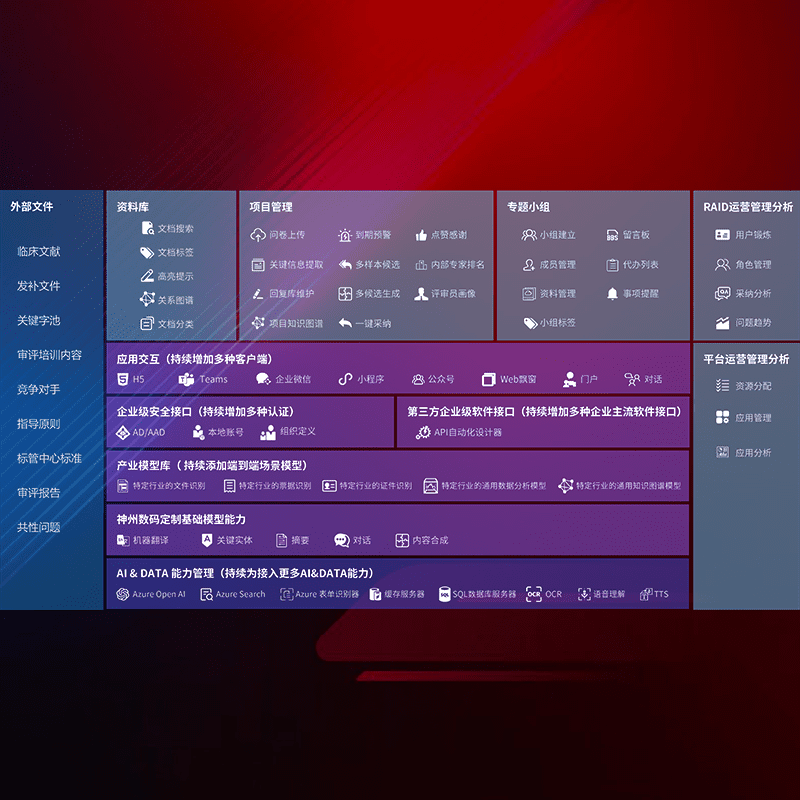 医疗器械产品上市前,,,,要熟悉严格与繁复评审标准,,,,整理分析监管机构指导文件中的海量信息。。。企业急需一个智能化解决方案,,,,提升知识管理效率,,,,提高评审通过率,,,以提升其市场竞争力。。。